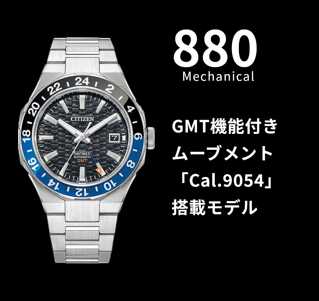 GMT機能付き機械式ムーブメント「Cal.9054」を搭載。